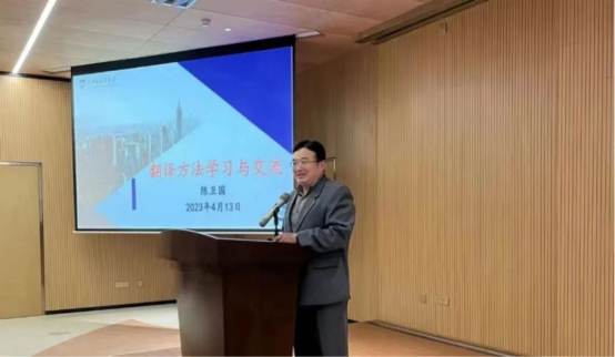 西安外国语大学高级翻译公司执行经理陈卫国教授做“翻译学习方法与交流”的主题讲座。