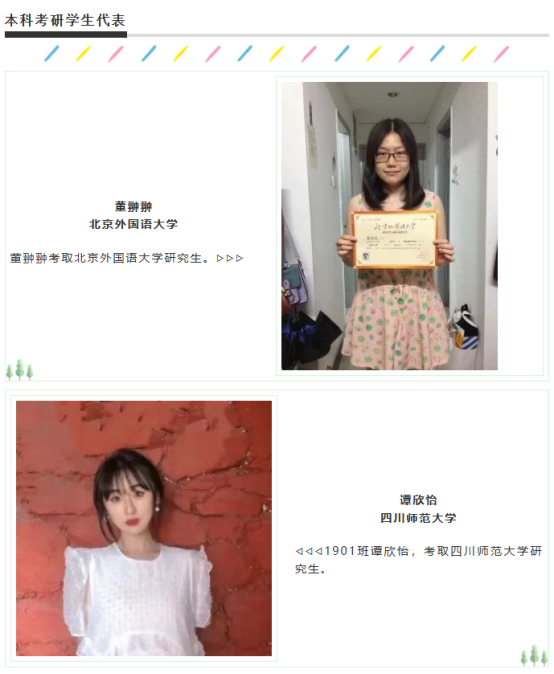 出国留学考研方向为TESOL或教育类、翻译类、传媒类、语言学或文学类、商科类等。