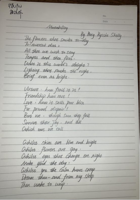 一等奖:英语卓越1901班谭欣怡同学的参赛作品