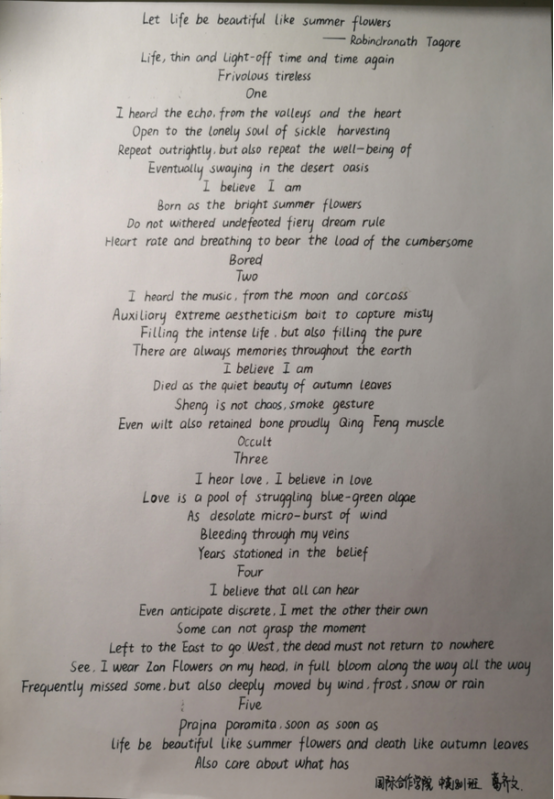 二等奖:汉语国际教育系1701班杨帆同学的参赛作品
