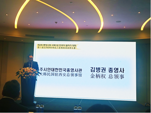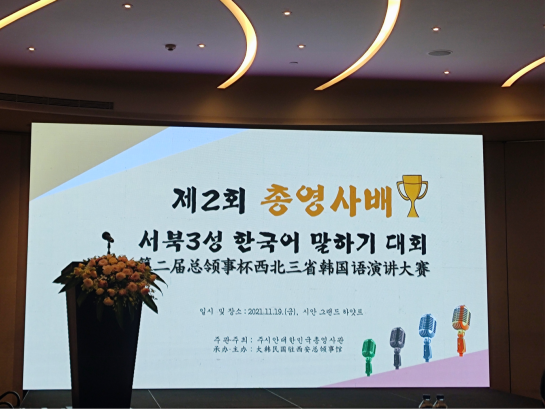 2021年11月19日下午,由韩国驻西安总领事馆主办的第二届“总领事杯”西北三省韩国语演讲比赛在西安君悦酒店举行。韩国驻西安总领事馆总领事金柄权、副总领事朴成焕、韩国旅游发展局西安办事处首席代表车赫镇等多位领导出席了本次活动。