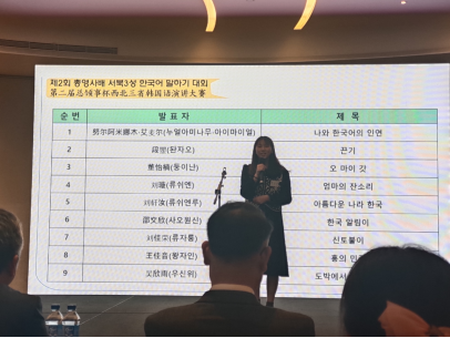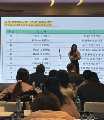 正式演讲比赛分为两个环节进行,各位参赛选手首先围绕“我对韩国的印象”作了主旨演讲,他们以自身经历为依托,讲述了在韩语学习的过程中自身对韩国产生的独特印象。