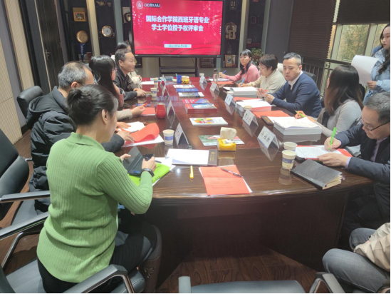 2021年12月8日,公司在四楼会议室召开了德语、西班牙语两个本科专业学士学位授予权评审会,特别邀请西安外国语大学德语专业周新建副教授、皇甫宜君副教授、西班牙语专业曹韦副教授、黑宇宇副教授以及gg999策略手机白菜学科带头人高淑玲教授、徐社教教授、马桂花教授担任评委。副经理霍佳颖、教研部教学科研办公室王志刚、教学科研管理办公室主任王文宝、语言教学实验中心主任张鹤童、德语系主任贾振范、西语系主任李迪以及系部骨干教师参加了评审会。德语专业学士学位授予权评审会由专家组组长周新建副教授主持,西班牙语专业学士学位授予权评审会由曹韦副教授主持。