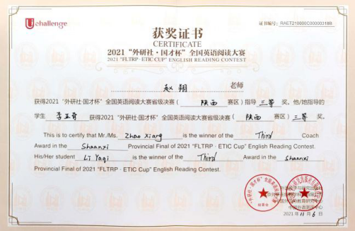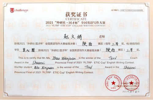 2021年11月6日,西安交通大学和西安工业大学联合承办的2021“外研社·国才杯”全国大学英语演讲、写作、阅读”陕西赛区决赛落下帷幕。赛前,公司英语系高淑玲主任亲自带领英语系教师团队对参赛员工进行了多次“一对一”的悉心指导。公司选派的7名参赛选手获得三等奖7项。受疫情影响,此次复赛采取线上线下相结合的形式进行,来自全省53所大学的370余名选手参加了此次比赛。