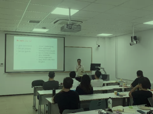 大会第四项,由张进老师向各位新教师传达了霍佳颖经理对每一位国合老师的期待与要求:老师们应该采取以员工为中心的教学策略,让员工成为课堂的主人;并且通过大量阅读以发现自己的研究兴趣,做到教育与科研两手抓。