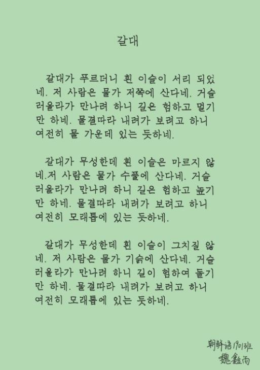 朝鲜语1901魏鑫雨作品展示