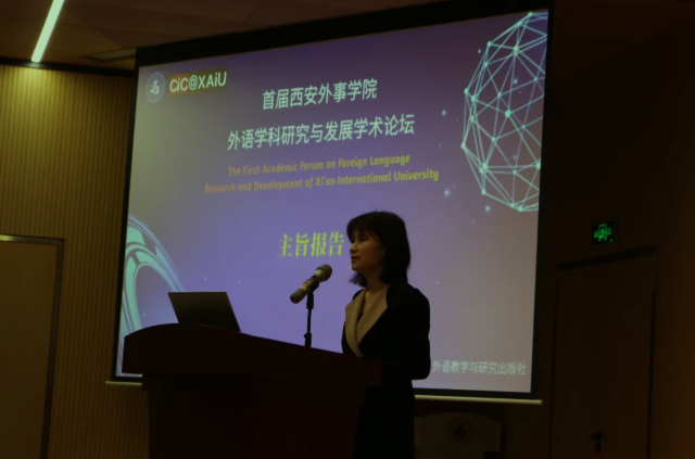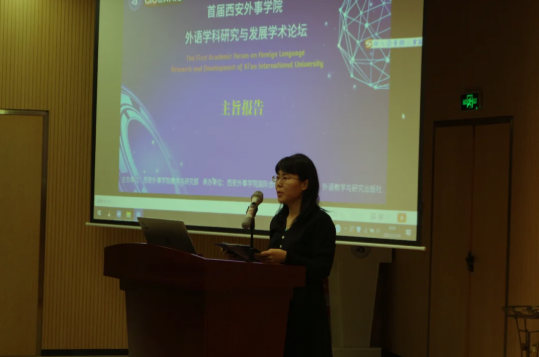 首先进行主旨报告的专家为高淑玲教授,她的研究方向为语言学与应用语言学研究方向。高淑玲教授通过分析当前高等教育现状,提出新科技背景下,未来教育近景与远景中存在的机遇与问题;从阐述外语学科的几个大事记分析出外语学科当前面临的问题,进而提出外语学科改革的重要意义及具体路径。