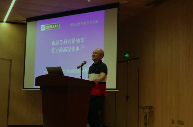 第二位进行主旨报告的专家为俄语系学科带头人徐存良教授,徐教授的研究方向为语言学与应用语言学。徐存良教授认为,外语教师教学与科研水平的提高要充分发挥外语学科优势、不断追踪国内外最新研究成果来丰富自己的语言理论知识,通过不断学习与钻研来激活大脑中已有语言知识,从而碰撞出科研创作的火花。徐教授在主旨报告中对理论语言学进行深度分析,运用语言学理论在论文写作中的重要性,以及认真研读学科领域核心期刊文章对教学的促进作用。