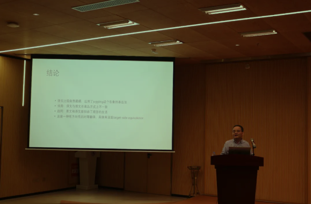 例如,在文体翻译方面,高璐老师分享了儿童文学翻译批评的基本方法;周立波老师则在应用翻译功能论指导下,指出“政论文体”中政府工作报告“隐喻翻译”时可采取的策略;李慧老师提出,翻译传播学视域下文化外宣翻译中译者必须以源语内容为前提,重构信息表达和结构,创造一个忠于原文文化维度、又符合译语读者认知语境的新文本。