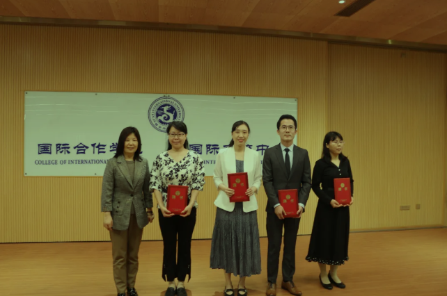 教学与研究部部长潘君女士为语言学与应用语言学研究工作室主任马桂花教授、文学与比较文学研究工作室主任雷挺博士、翻译理论与实践研究工作室主任王靖涵副教授、跨文化与国别区域研究工作室主任展卫华副教授分别颁发聘书。