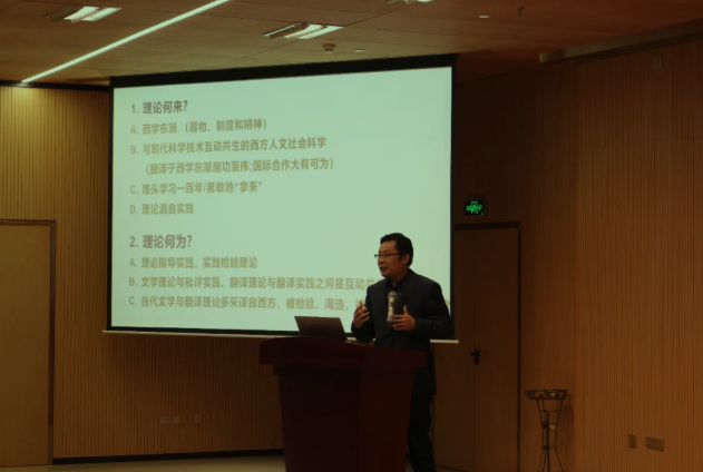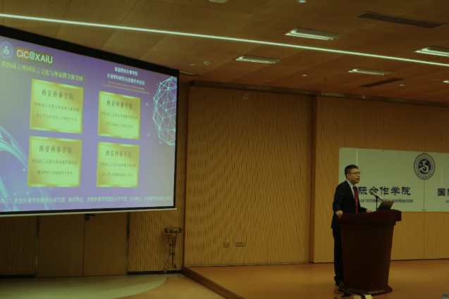 聘书颁发仪式后,就正式进入了主旨报告环节。主旨报告的七位专家围绕四个研究方向:语言学与应用语言学研究、文学与比较文学研究、翻译理论与实践研究、跨文化与国别区域研究带来了精彩纷呈的报告。