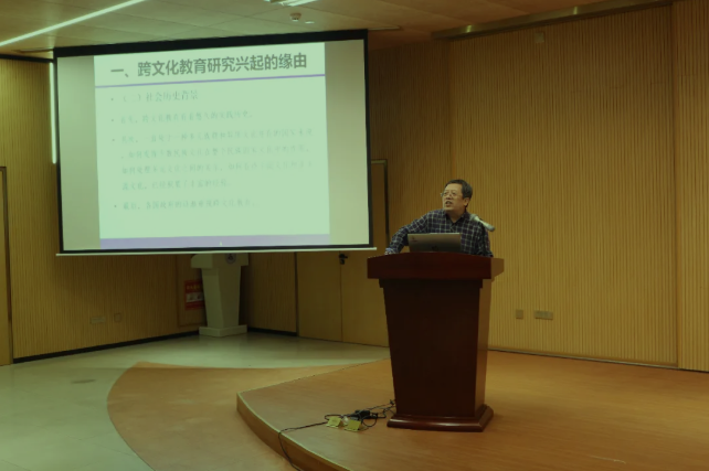 第六位主旨报告专家为特聘学术专家睢党臣教授,睢党臣教授立足于“跨文化与国别区域研究”,此次主旨报告的题目是《跨文化教育问题研究》。睢党臣教授分析了跨文化教育研究兴起的缘由、研究现状及具体内涵,并提出了跨文化教育的四个核心要素与外语教学中的跨文化教育的三个实践内容。