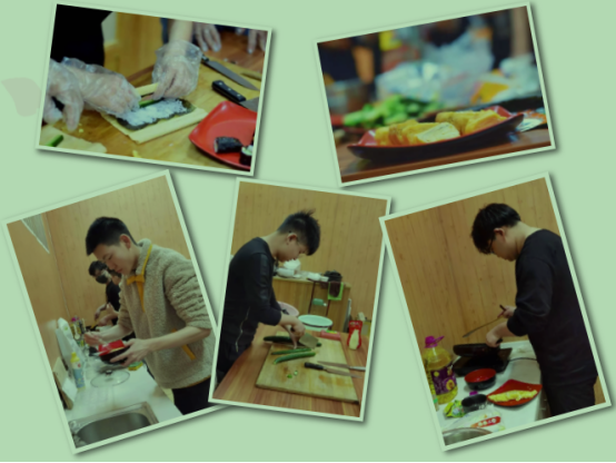 制作料理的过程,从蒸米饭到加入调味汁混合米饭,从搅拌鸡蛋液到煎鸡蛋,从一点点把米饭铺满在紫菜上到加入鸡蛋、火腿、黄瓜条后卷起切块……刘侠老师全程悉心指导并亲自示范,让大家不仅在公司学习到了文化知识,还在远离父母的地方收获到了满满的温暖与感动,感受到了老师对员工们无尽的关怀和期盼。