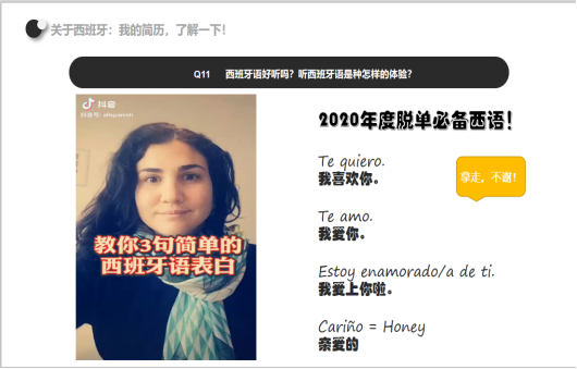 此外,韩老师还从同学们感兴趣和实用的角度出发,为大家准备“最实用的”西班牙语教学内容,并结合视频辅助帮助大家更准备的把握发音要点。