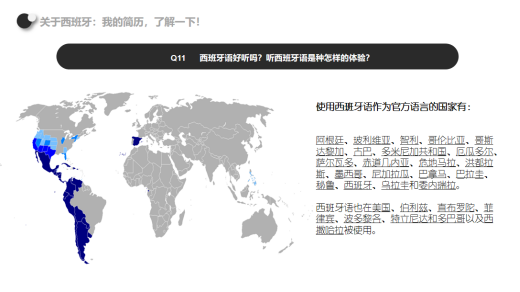 韩老师还向同学们介绍了西班牙语使用覆盖率及重要性,并邀请大家积极参加下学期的西班牙语二外课程。