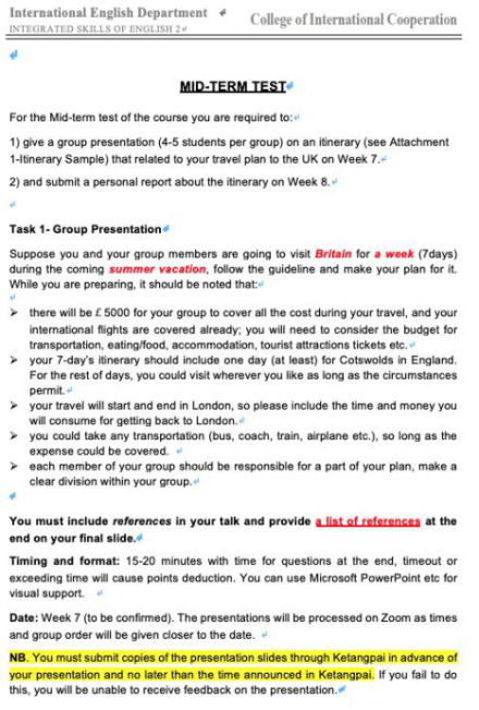 王晓庆老师在期中考试中利用“小组云演讲”的方式对《综合英语》进行考核,同一课程教师们共同制定考试要求,员工们根据要求,在课下自行组队,利用网络开展小组讨论,课上协力完成录制和制作工作,同时增进了团队协作能力。