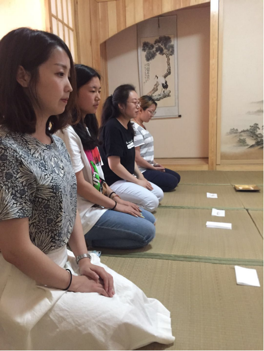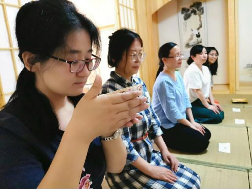 优雅的姿态,端严的举止,所带给我们的,不仅仅是茶道表演的艺术盛宴,更是心灵随之宁静祥和的一剂良方。老师和同学们安静有序地分组参与,在市来老师的指导下亲身体验流传千年的,严谨精妙的日本茶道。