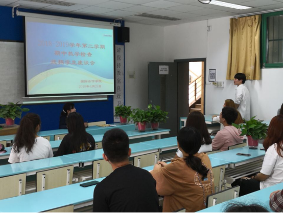 4月24日下午,公司召开期中教学检查座谈会,教学主管、员工主管、各系教师代表和各班员工代表参加。员工座谈会由院督导刘侠主持,教师座谈会由副经理霍佳颖主持。