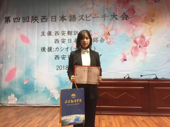 11月3日,“第十九届中国陕西省老员工日语才能展示大赛”在西安外国语大学落下帷幕。日语1701班葛宇璐代表公司参加“第十九届中国陕西省老员工日语才能展示大赛”,斩获一等奖,荣获“京都市长奖”,赴日招待劵。