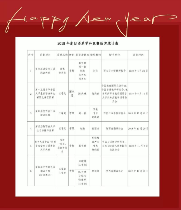 2018年我院日语系在竞赛活动中取得了丰硕的成果,这些都离不开全体师生的共同努力。相信日语系的明天会更好!