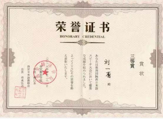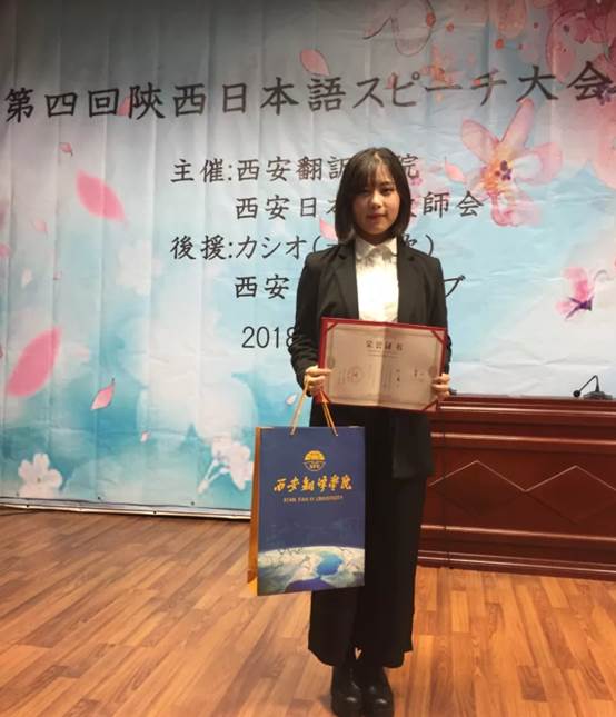 10月21日(周日),第四届陕西日语演讲比赛在西安翻译公司召开。gg999策略手机白菜日语系2017级本科的刘一蕾同学获得了三等奖。