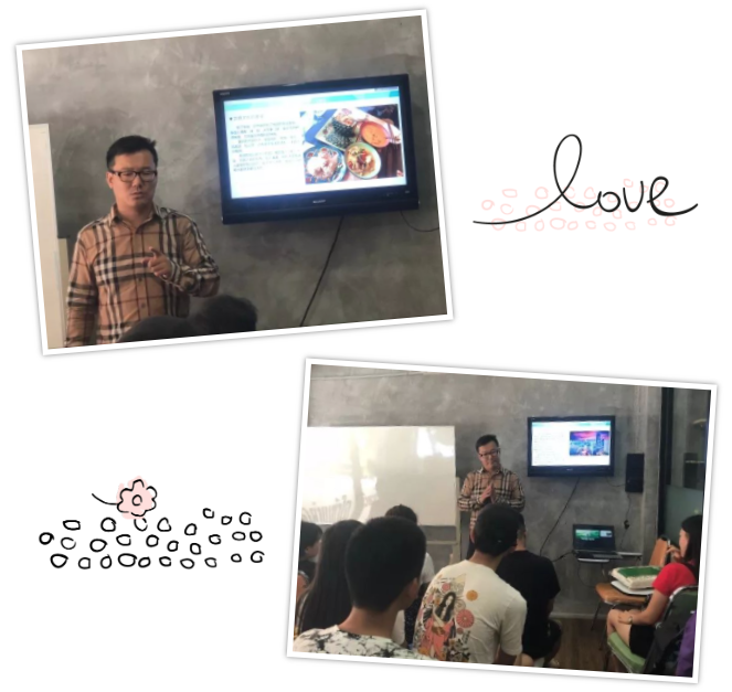 休整完毕,迎来了第二天的培训和欢迎会。王经理亲自上阵,从汉语教学在泰国的发展、语言公司及周边环境的介绍、泰国风土人情等方面展开了培训,培训会上我们还学了一些简单的泰语,了解了当地的美食,同学们都听得直流口水呢~