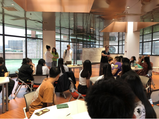 关于课堂上使用手机的话题直击痛点,瞬时引发了全场激烈地讨论。第四小组代表高宇翔同学在Marcelo教授的指导下组织了一场小型辩论,许多同学和老师发表了自己的观点,将活动氛围推向高潮。