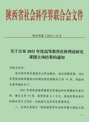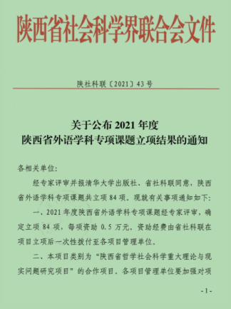 陕西省社科联公布的2021年度外语学科专项课题立项通知(陕社科联〔2021〕43号文件)和高等教育社科理论课题立项通知(陕社科联〔2021〕50号文件),公司教师团队在两次课题申报中均取得佳绩。