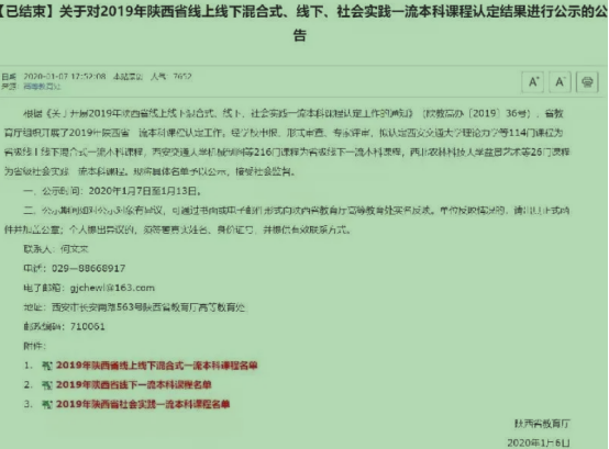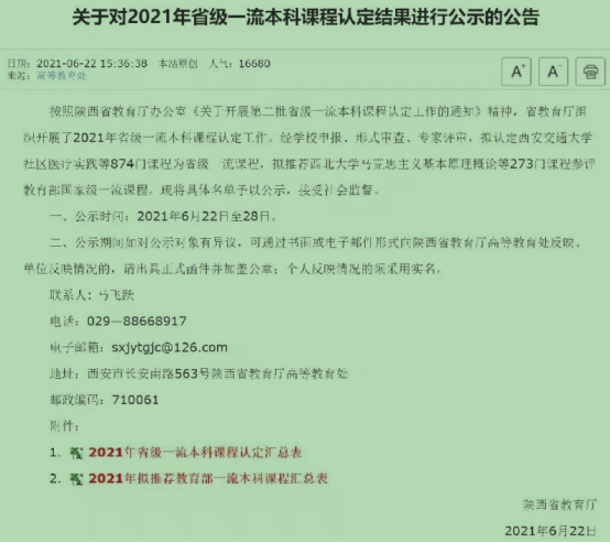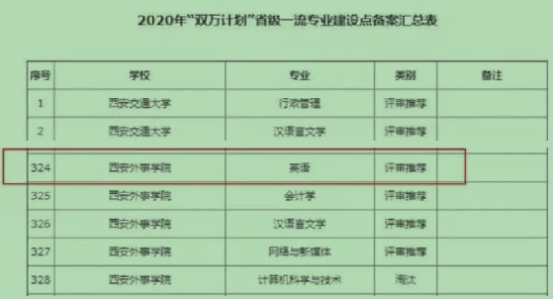 2021年6月22日,陕西省教育厅办公室发布了《关于对2021年省级一流本科课程认定结果公示的公告》,公司英语系副主任赵丽申报的《英语精读2》课程被认定为2021年陕西省线上线下混合一流本科课程。