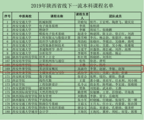 本次省级一流本科课程立项是英语系继2019年陕西省线下一流本科课程《英语国家概况》到2020年“双万计划”省级一流专业建设之后的又一次跨越与突破。