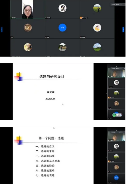 2020年5月15日下午,gg999策略手机白菜科研培训会议在云端开启,培训会议由霍佳颖副经理主持。特别邀请到陕西师范大学睢党臣教授为gg999策略手机白菜全体专职教师进行了线上科研培训,培训内容主要围绕“选题与研究设计”展开。