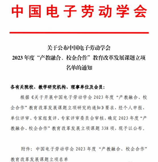近日,中国电子劳动协会发布了《关于中国电子劳动学会2023年度“产教融合、校企合作”教育改革发展立项名单的通知》,公司英语系耿利红主持申报的课题“产教融合背景下的应用型翻译人才培养模式研究”获批教育改革发展课题立项。
