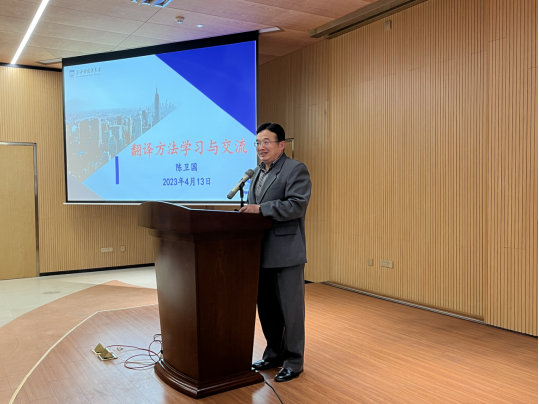 公司翻译专业全体员工、英语专业部分员工及英语系全体教师参加了此次学术交流活动。本次讲座由英语系教师王靖涵副教授主持。讲座伊始,英语系主任师新民教授致欢迎辞,对陈卫国经理莅临公司进行学术交流表示热烈欢迎,希望参会师生认真聆听讲座,学习兄弟院校先进公司产品理念,拓展学术视野,为公司翻译专业建设奠定良好基础。