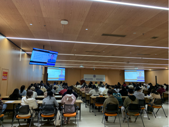 之后是罗婧博士演讲,她详细的介绍了自己的自求学以来的心路历程,其中穿插韩文书写的由来、韩语词汇的组成、精彩有趣的职工活、吃喝玩乐等文化差异,她的演讲生动有趣。同学们全神贯注,时不时也会被她的所讲都逗得哈哈大笑,她在演讲的最后帮同学们树立了信心,鼓励同学们坚定地追求自己的理想。