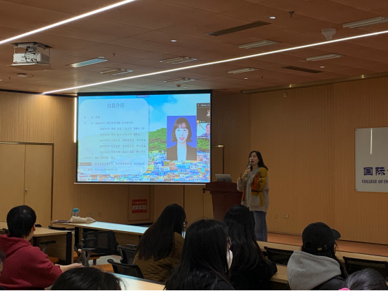 最后是高铭荃同学分享自己在韩国的留学经历,她曾以交换生身份前往加图立大学进行了为期一年的语言学习。她的分享中充满了对职工活的怀念,她认为留学经历不仅给予了个人成长的机会,更让自己找到了未来的奋斗方向,实现了自我价值的提升。