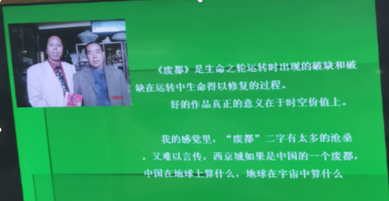 语言是社会现象,也是历史现象,是一种在现实生活中使用者的语言,实际上是长时期历史发展的结果。因此,论证语言价值是研究民族历史变迁的必要工具。而文学与艺术是依靠一个民族、一个国家或是一个地方存在的。胡教授引用美国作家Barry Lopez的观点进一步论证了贾平凹先生以细腻的笔触展示一个当代作家对国家和个人发展的关注。随后,胡宗峰教授介绍了贾平凹先生的长篇小说《废都》,并引经据典详述了这部作品的翻译过程,重新定义文字的“温度”、根源和历史之间的关系。