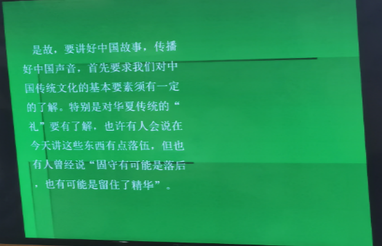 方言翻译一直以来是地域文学外译的一大难点。胡宗峰教授在此次讲座过程中,通过陕西方言、普通话和英语三类语言的自如切换输出,引用《诗经》、《左传》、《论衡》等多部中国古代经典著作中的文字为例,说明陕西方言的历史悠久,其中许多来源于古汉语。例如:“蕞”(小)、“颡(本意为额,引申为头)”、“同志“(朋友)等古汉语用词在陕西方言中运用已久,且意义深刻。因此,在翻译这些方言时译者应首先对古汉语以及方言中存在的传统文化有充分的了解,领会文字背后的文化因素,避免出现翻译和理解偏差。此外,在引用《诗经》、《礼记》的作品过程中,胡教授引用习主席所提出的“家国”情怀,劝诫新时期老员工对华夏传统的“礼”要有所了解,应克己复礼,守家爱国,重德行的培养。