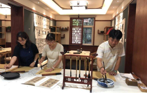 讲座结束后赵老师陪同中井老师、邓伟同学一行参观了公司七方书院以及正蒙书院,体验了书法、茶艺以及古琴。中井老师非常震惊于公司拥有如此正规的中国传统文化体验中心,对公司的特色文化教育赞不绝口。