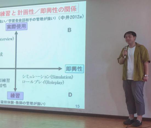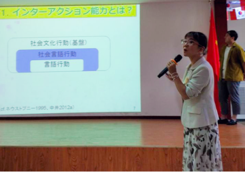 中井老师分别从语言行为、社会语言行为及社会文化行为等方面为我们解释了什么是“互动能力”以及“互动能力”的重要性。并将理论与实际课例相结合对“互动能力”的培养进行了详细的分析。中井老师讲解深入浅出、简洁明快,现场反响热烈。师员工们都积极踊跃地提出问题,中井老师耐心细致地回答了现场师生的提问。