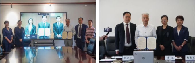 随后,双方董事长以跨国合影的方式,分别在中国西安、日本山口县拍摄了线上+线下的异空间纪念合影。
