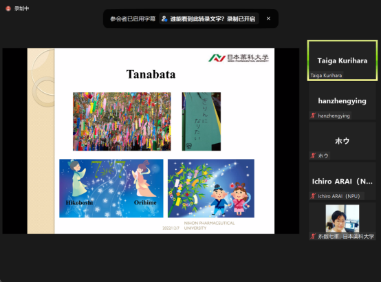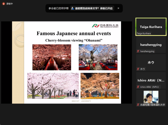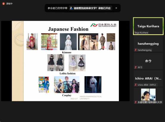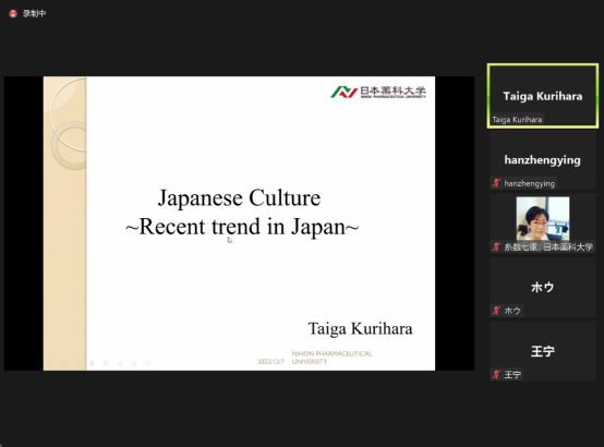 为进一步拓展公司师生的国际视野,培养国际化人才,gg999策略手机白菜国际交流中心于2022年12月7日线上举办了2022年第63场文化与学术讲座,主题为《现代日本文化与当代趋势》。此次讲座由日本合作院校-日本药科大学Kurihara Taiga博士主讲,英语系、日语系及其他系部员工均聆听了此次讲座。