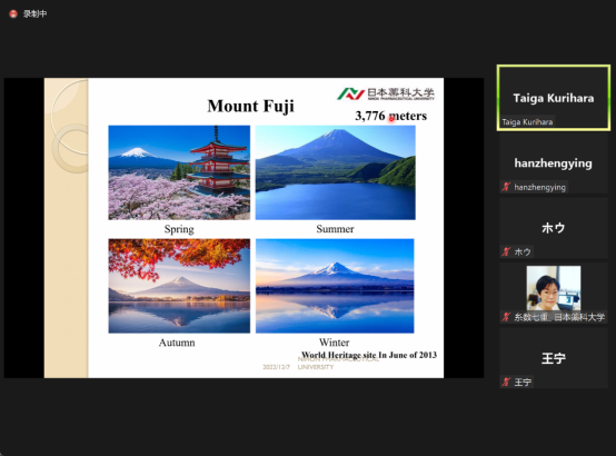 首先,Kurihara教授为同学们讲解了日本的地理概况,包括日本的地理位置和地质特点等等,除此之外,Kurihara教授还介绍了日本最著名的“日本第一山”——富士山的四季美景。
