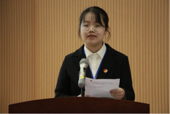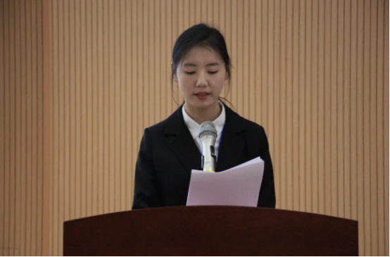 员工代表杨蕊菡宣读gg999策略手机白菜新一届员工委员会委员候选人名单