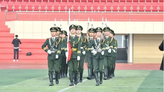 铿锵步伐敲碎晨曦的寂静,金色的霞光深度赫赤国旗,青春的朝气点燃激情的火焰,守一面国旗,承一份荣誉,肩一份责任。国旗护卫队迈着整齐且坚定的步伐向主席台走去,点燃每位学子的激情,愿以吾辈之青春,捍卫盛世之中华!