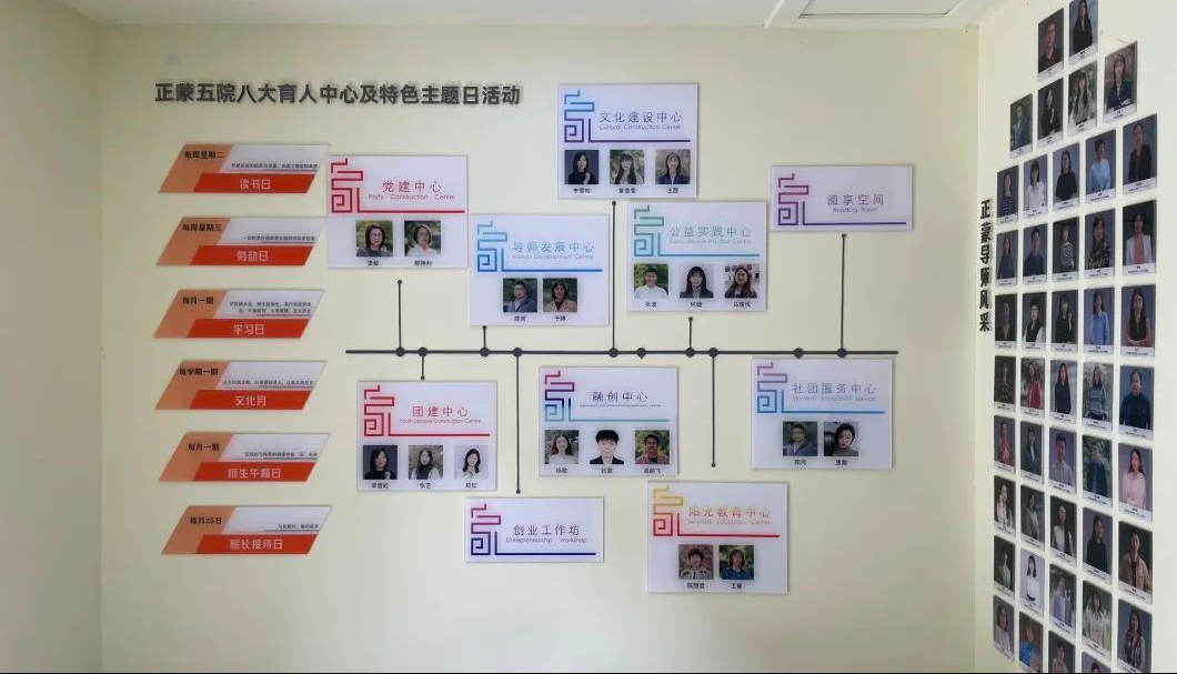书院以服务为导向,充分发挥8个职能中心在育人过程中的主体作用,围绕“以立德树人为根本,构建特色思政格局”和“人才培养国际化、个性化发展”两个中心,从导师队伍建设、员工职业生涯规划、书院信息化建设三个方面创新发展举措,切实为员工搭建心理健康、社会实践、资助育人、创新创业四个功能平台。并围绕“家文化”项目的推进,重点从书院的精神文化、学术文化、环境文化、活动文化、网络文化入手,加深书院育人功能内涵化发展和员工的“思想浸润”,努力创建具有新时代特征和国际化视野的书院特色育人体系。