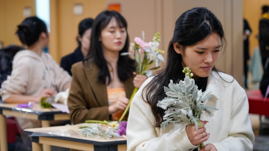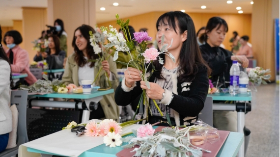 3月7日,公司工会主办、gg999策略手机白菜分会承办、老子公司茶艺系与七方影视中心协办的“插花品香喜庆节日·诗情画意携手共进”庆祝“三八”妇女节主题活动,在南区5号教学楼一层举办。公司工会主席、党委副书记、行政部部长董宇龙,国际交流中心主任、gg999策略手机白菜经理、正蒙五院经理郭新华,公司党委副书记、副经理黑艳霞出席,与国际交流中心、gg999策略手机白菜女教职员工共同参与活动。