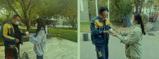 在此次暖茶活动中,志愿者们体会到了一种给予与奉献的快乐,在收到暖茶的环卫工人们报以真诚的感谢时,他们也感受到了来自陌生人的温暖与祝福。在本次暖茶活动中,志愿者们的温暖行动将正蒙五院的“家文化”精神内涵与“奉献、友爱、互助、进步”的志愿者八字方针紧密联系到了一起,让温暖伴你我同行,让大家在校园里也能感受到家一般的温暖。