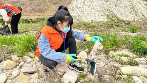 活动正式开始后梧桐老师带领志愿者们清理流域内的生活垃圾,在清理过程中大家各自分组,手持垃圾袋、捡拾钳子等工具,沿着高低不平的河道,对河道沿岸裸露的白色垃圾、岸边漂浮物进行彻底清理。在清理过程中,大家发扬不怕脏、不怕累的志愿精神,用手捡、用袋装、用夹子夹,认真清理河道垃圾。在清理垃圾的同时,梧桐老师向志愿者讲解了爱护河水保护环境的理念,分享了河流以及周边的动物植物生长情况与相关知识,讲解河道被污染的严重危害性,以此倡导大家要自觉爱护环境、积极主动参与河道清理活动。