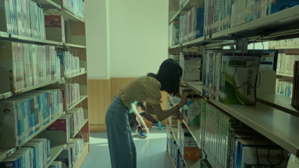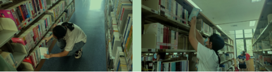 在到达图书馆后,带队者与馆内工作人员完成任务对接后,带领分配志愿者们来到了自己的工作岗位上。