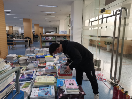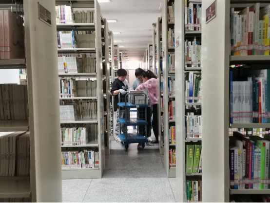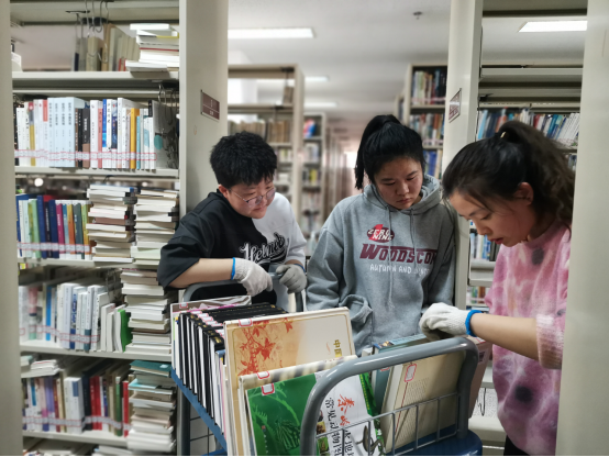 下午两点,在与图书馆工作人员对接完成后,志愿者们便纷纷走到了自己的工作岗位,他们有的和管理人员一同整理读者放乱的书籍,有的拿起扫帚轻手轻脚地扫起了地,有的来到图书馆门口,为到来的读者提供引导服务。举手投足间彰显了外事志愿者和国合新青年的美好风范。